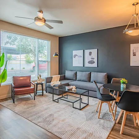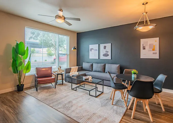 The Luxe Lookout Balcony Pool Sleeps 4 Apartment Tempe is located about 10 minutes' drive from Riverview Park and 2.1 miles from the public metropolitan research Arizona State University. Wi-Fi is available for guests' business or leisure needs.